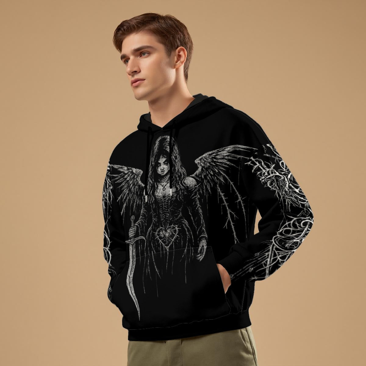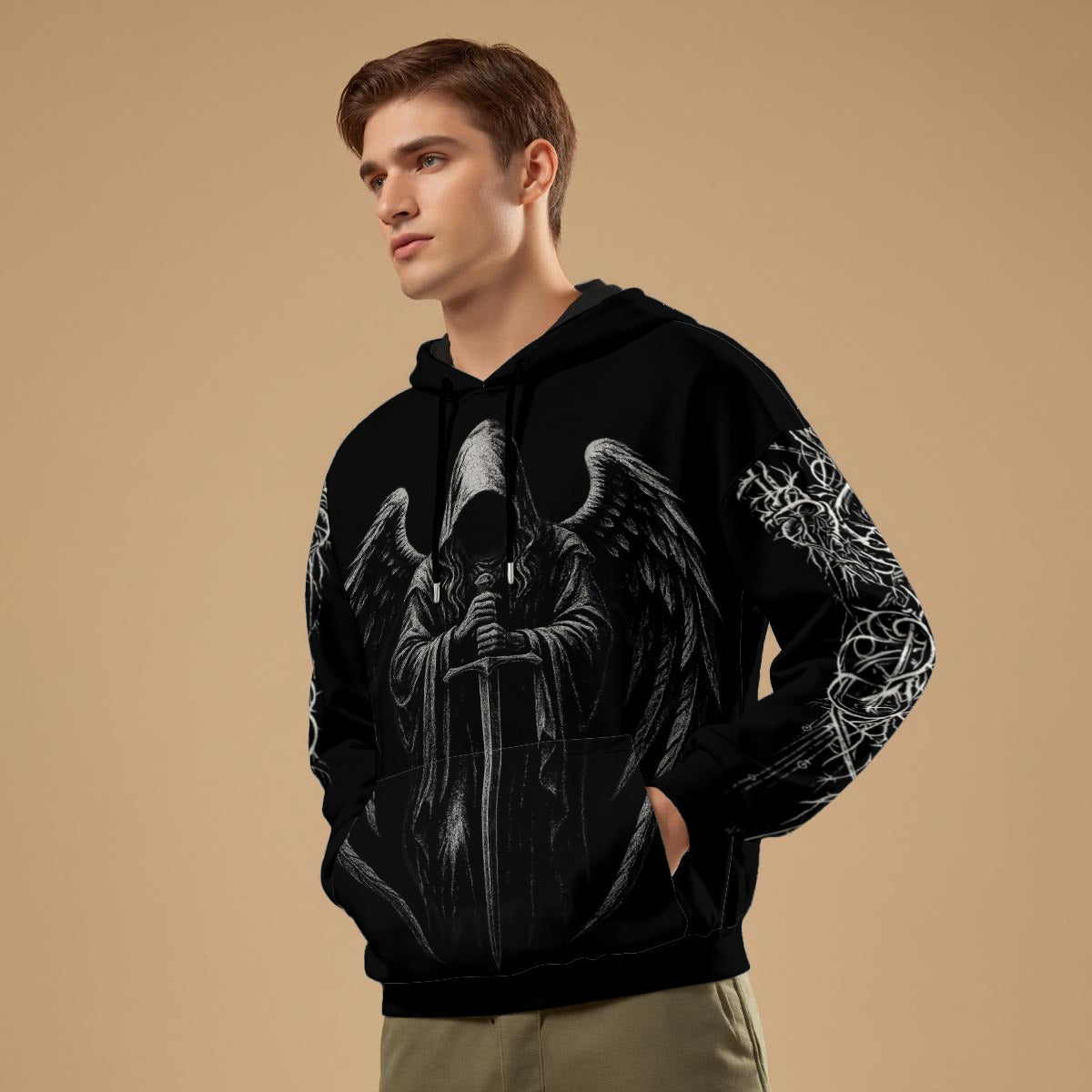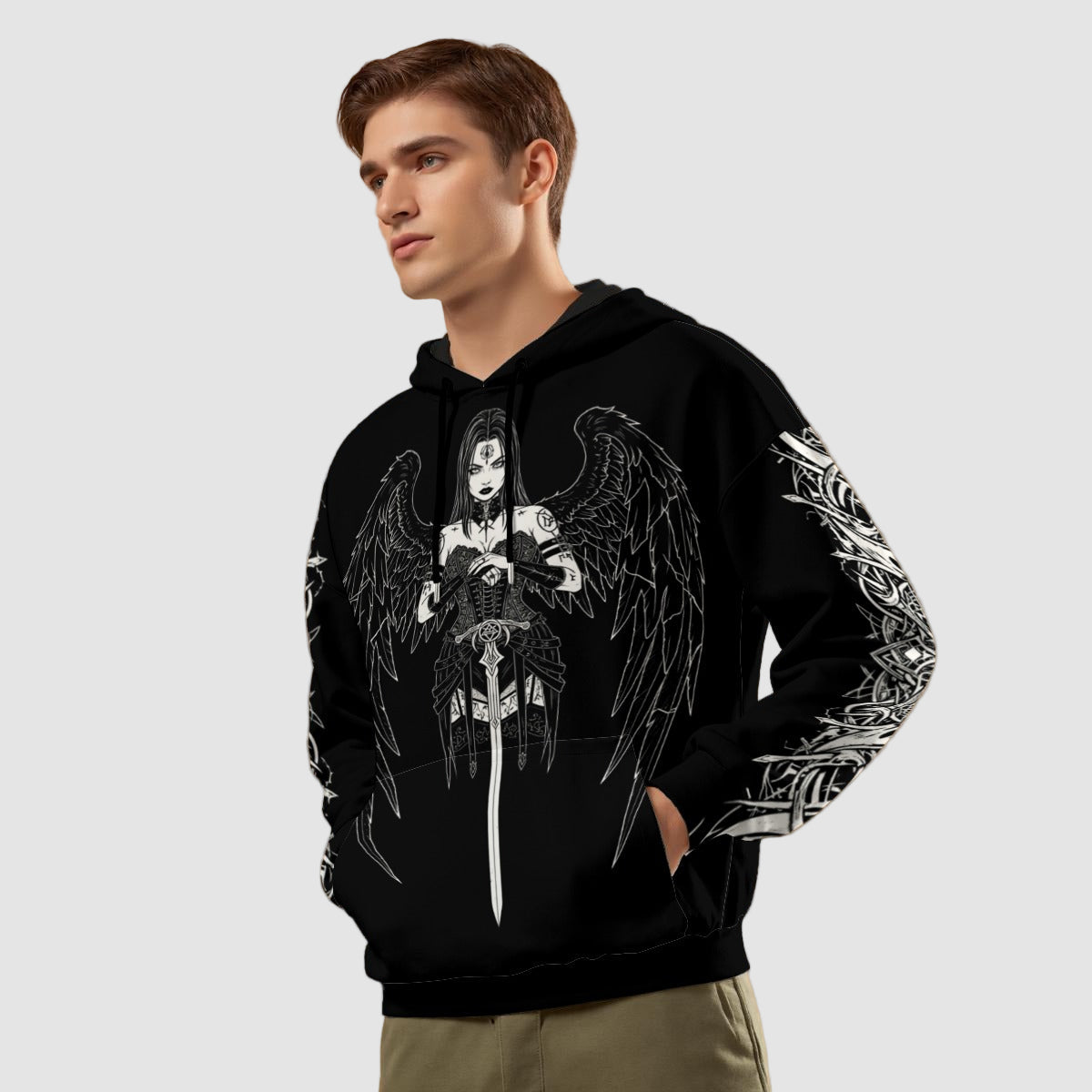 Meie gooti stiilis meeste dressipluuside kollektsioon on hoolikalt koostatud, et see vastaks kõrgeimatele kvaliteedi- ja disainistandarditele. Sellel on ainulaadsed autentsed kujundused, mis on inspireeritud klassikalistest gooti elementidest, nagu katedraaliarhitektuur, okultne sümboolika ja tumedate legendide motiivid. Meie kasutatavad materjalid, sealhulgas tehnoloogiliselt arenenud kangad, on valitud vastupidavuse ja mugavuse järgi. Iga elemendi täpne viimistlus peegeldab meie pühendumust pakkuda tooteid, mis mitte ainult ei näe head välja, vaid peavad vastu ka ajaproovile ja raskele kasutamisele.