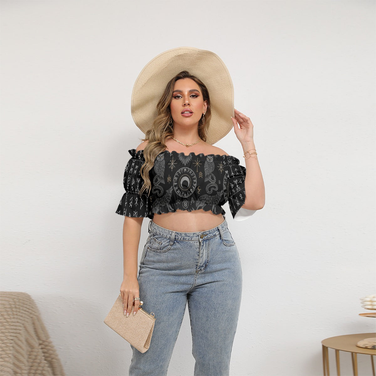 Alternatiivne Slavic Goth topp volangide ja maagiliste mustritega pluss-suuruses