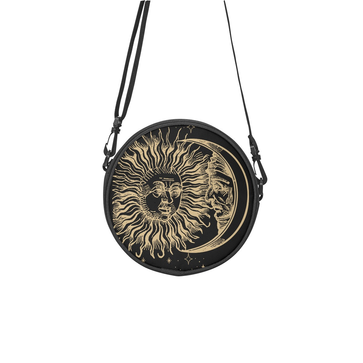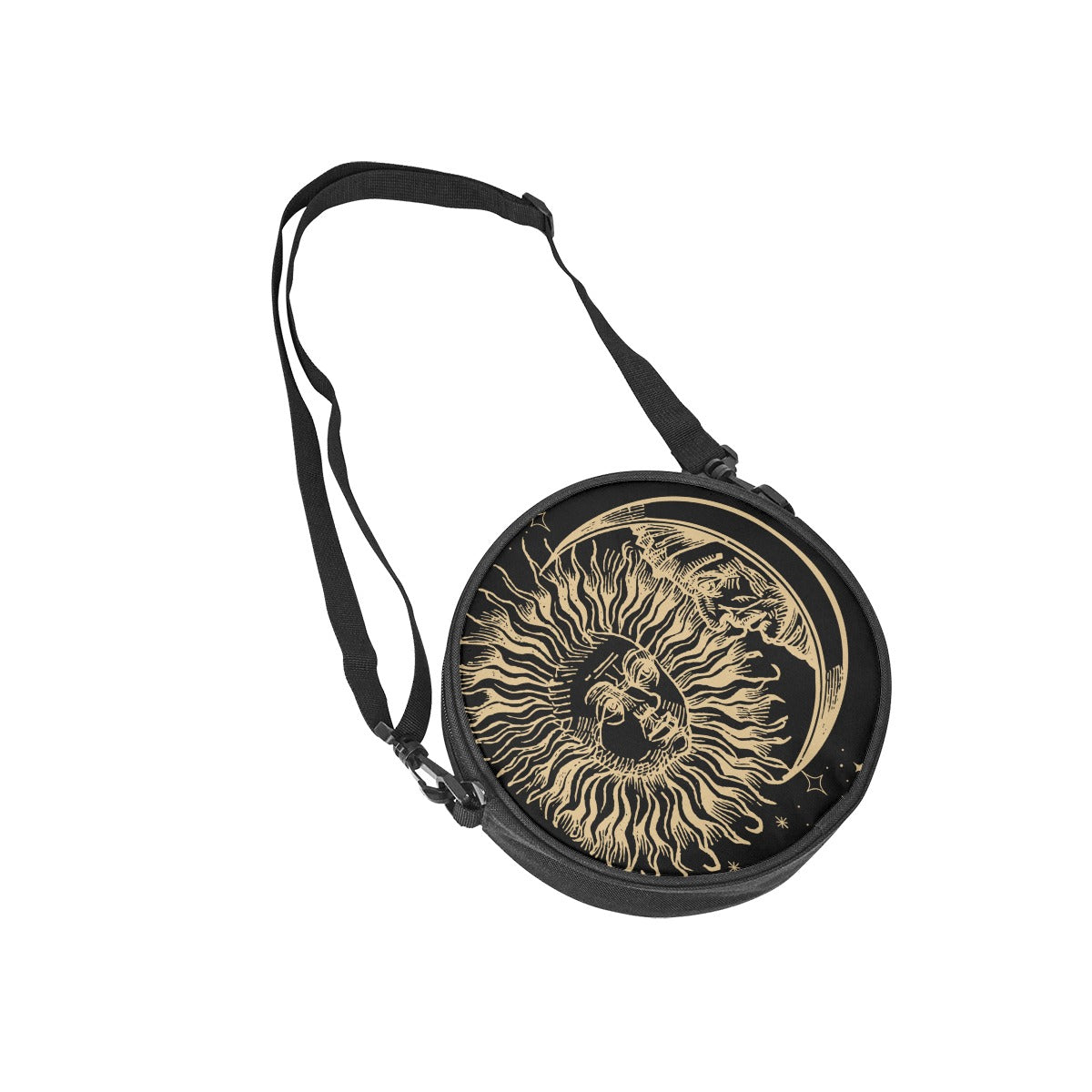 Must ümmargune kott päikese ja kuu motiiviga, müstiline disain